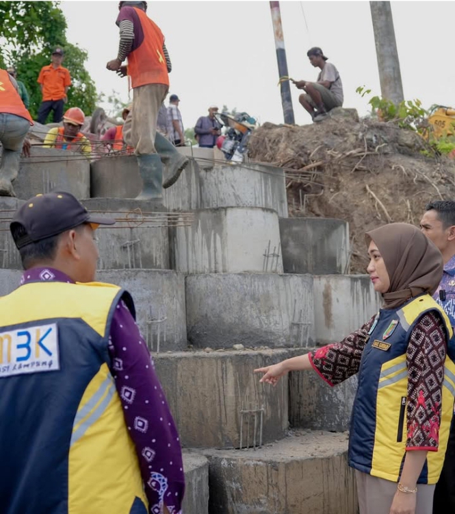 Wakil Gubernur Lampung, Jihan Nurlela, turun langsung meninjau progres perbaikan guna memastikan akses masyarakat tetap aman dan lancar. Longsor yang terjadi sebelumnya sempat mengganggu mobilitas warga, Jum’at (27/02/26), terutama di jalur penghubung kawasan pesisir.